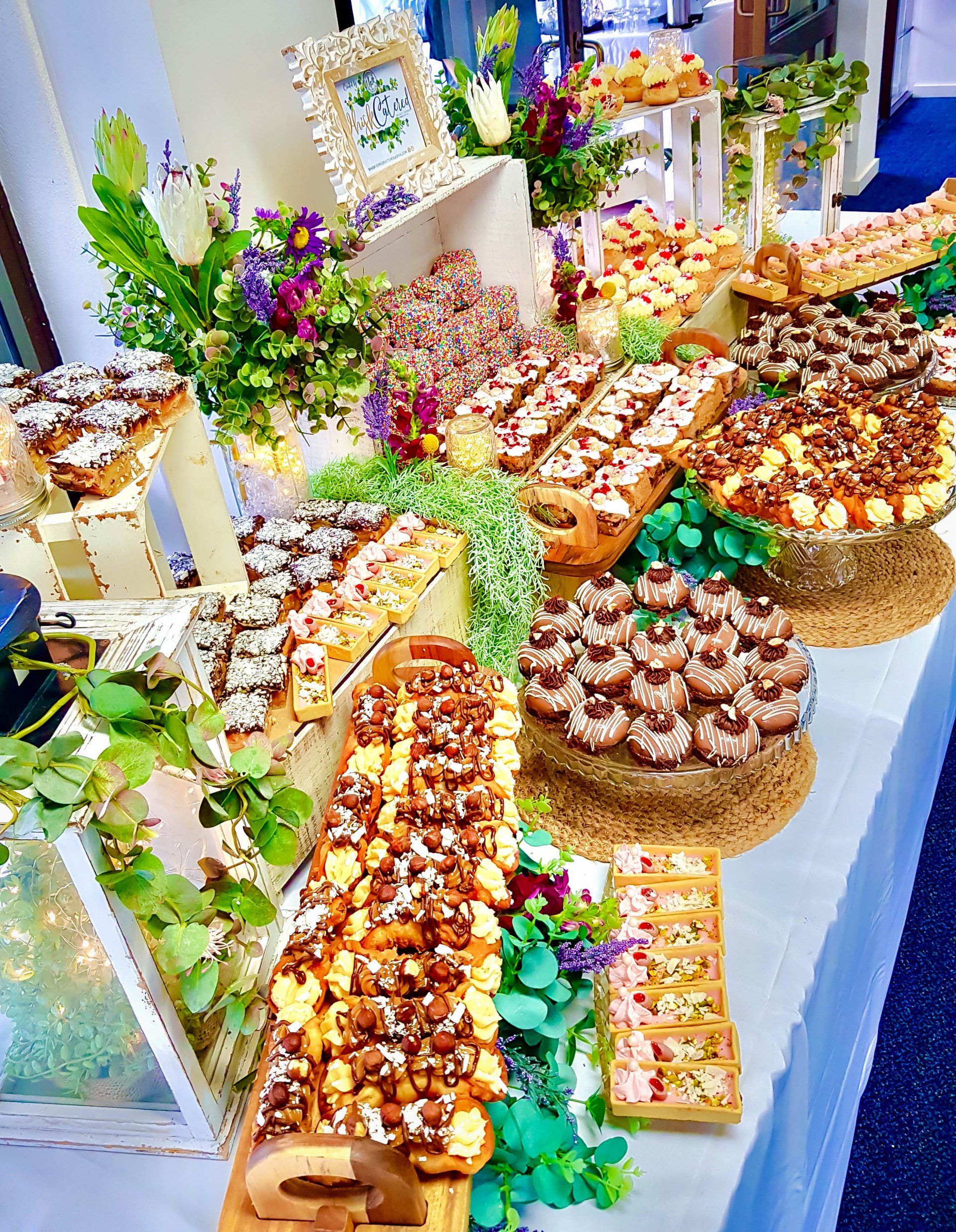 Our grazing tables are a beautifully designed work of art, and the perfect way to entertain your guests before, during and after your wedding ceremony. Designed to compliment your theme, they include a range of meats, cheeses, dried and fruit, savoury biscuits and dips as well as a selection of sweet donuts, cakes or slices along with hot and cold savoury options.